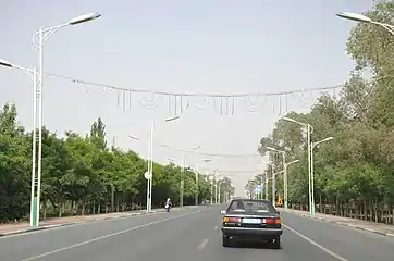 As of 1997, several townships had a majority of Uyghur residents including Ka'erquga Township (98.6%), Donghetan Township (98.5%), Akesufu/Akesupu Township (90.1%), Gulebage Township (65.3%), Xingping Township (61.6%) and others.[4]