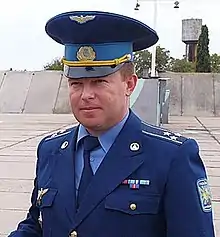 Yuliy Valeriyovych Mamchur[lower-alpha 1] (Ukrainian: Юлій Валерійович Мамчур) is a colonel in the Ukrainian Air Force who, for three weeks in March 2014, refused to abandon his post in Belbek, Crimea amidst the annexation of Crimea by the Russian Federation while surrounded and outnumbered by Russian forces.[3][4][5][6][7][8] Mamchur is also credited for restraining amiably and diplomatically both his soldiers and pro-Russian forces from escalating tensions further, asking both sides not to shoot each other while the situation defuses.