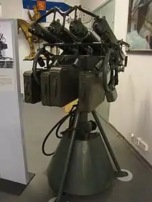 The ZPU (Russian: ЗПУ; зенитная пулемётная установка, romanized: zenitnaya pulemotnaya ustanovka, meaning "anti-aircraft machine gun mount") is a family of towed anti-aircraft guns based on the Soviet 14.5×114mm KPV heavy machine gun. It entered service with the Soviet Union in 1949 and is used by over 50 countries worldwide.