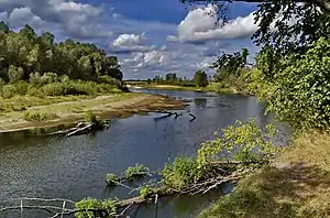 The meandering Desna River runs from north to south along the west border of the park. The channel itself is 5–10 km from the park, while the park is on the first and second terraces.[2] The park is about 10 km wide (west-to-east) and 20 km north-to-south.