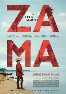 Zama is a 2017 Argentine period drama film directed by Lucrecia Martel, based on the 1956 novel of the same name by Antonio di Benedetto.[4] It premiered at the 74th Venice International Film Festival.[5] It was also screened in the Masters section at the 2017 Toronto International Film Festival.[6] On 29 September 2017, the Argentine Academy of Cinematography Arts and Sciences chose the film as the national entry for Best Foreign Language Film at the 90th Academy Awards and Best Iberoamerican Film at the 32nd Goya Awards.[7][8]
