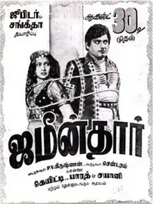 Zamindar is a 1952 Indian Tamil-language film directed by P. V. Krishnan and written by Jalakantapuram. The film was jointly produced by Jupiter Pictures and Sangeetha Pictures. It stars S. A. Nataraj and Madhuri Devi. The film was released on 30 August 1952,[1] and was commercially unsuccessful.[2][3]