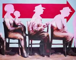 ![]() Painting by Zbylut Grzywacz, "Kolejka jeszcze trwa" (And the Queue Still Goes On), 1973, acrylic on canvas, 135x170 cm, National Museum, Kraków | |