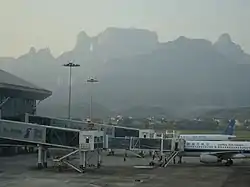 Zhangjiajie Hehua International Airport (Chinese: 张家界荷花国际机场) is an airport serving Zhangjiajie, Hunan, People's Republic of China (IATA: DYG, ICAO: ZGDY). The airport is located in Huhua village in Yongding District of Zhangjiajie. It is the second largest airport in Hunan, after Changsha Huanghua Airport, and the only international airport in the Wuling Mountains region.[2][3] As of 2019 it has a capacity of 5 million passengers, 19,000 tons of cargo and 45,000 aircraft movements.[2]