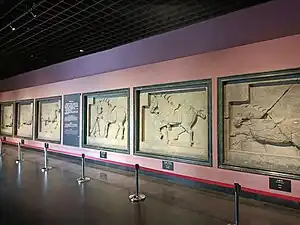 One of the reliefs, very likely after a drawing by Yan Liben, at the Penn Museum. Here a general removes an arrow from the horse Saluzi ("Autumn Dew")[3]