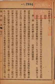 Comprising sixteen chapters[3] and twenty-one poems,[6] Zhulin yeshi was written in the late Ming dynasty by an anonymous writer using the pseudonym Chi Daoren (痴道人),[7] translated into English as "Infatuated Moralist"[7] or "Man of the Crazy Way".[4] The novel was published in Suzhou and likely had its first printing sometime between 1610 and 1620, although it was subsequently banned by the Qing government.[7]