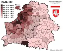 Zianon Stanislavavič Pazniak (Belarusian: Зянон Станіслававіч Пазняк, born 24 April 1944) is a Belarusian nationalist[1] politician, one of the founders of the Belarusian Popular Front and leader of the Conservative Christian Party – BPF. He was the Belarusian Popular Front nominee for President of Belarus in the 1994 election.