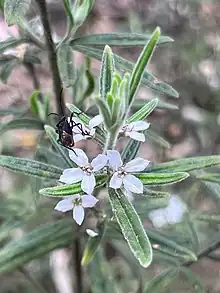 Zieria murphyi is a slender shrub which grows to a height of 1–2 m (3–7 ft) and has smooth branches which are velvety when young. The leaves are sometimes a single leaflet and otherwise composed of three linear to lance-shaped leaflets. The leaves have a petiole 3–10 mm (0.1–0.4 in) long and the central leaflet is 30–49 mm (1–2 in) long and 3–10 mm (0.1–0.4 in) wide. The upper surface of the leaflets is dark green and covered with soft hairs whilst the lower surface in a lighter green and covered with velvety, star-like hairs. The flowers are white to pale pink and are arranged in groups of between three and nine in leaf axils, the groups shorter than the leaves. The sepals are triangular, about 2 mm (0.08 in) long and wide and the four petals are 4–6 mm (0.16–0.24 in) long and covered with soft hairs. Flowering occurs mainly in August and September and is followed in summer by fruit which are smooth capsules, covered with soft hairs.[2][3][4]