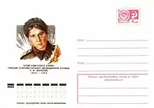 Zinaida Ivanovna Mareseva (Russian: Зинаида Ивановна Маресева; 20 June 1923 – 6 August 1943) was a Senior Sergeant in the 214th Guards Rifle Regiment of the 73rd Guards Rifle Division during World War II. For her actions in battle she was posthumously awarded the title Hero of the Soviet Union on 22 February 1944.[1]