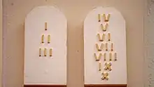 The sixth and final shield on the left side of the nave depicts Flaying Knives; representing Bartholomew. He preached the Gospel of Christ in India and then went to Armenia. The flaying knives represent the manner of St. Bartholomew's death; he was flayed alive by barbarians in Armenia.