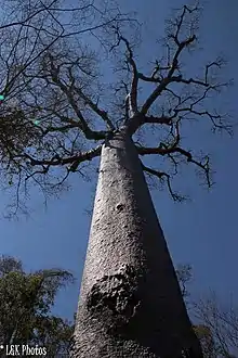 The canopy trees of the forests average 10–16 m tall[7] and are primarily members of the families Euphorbiaceae and Fabaceae (e.g. Pongamiopsis pervilleana).[3] Baobabs (Adansonia za and Adansonia grandidieri) along with other taller trees can be found emerging above the canopy.[11] Beneath the canopy, there is usually a shrub layer made up primarily of woody species with thick, sclerophyllous leaves,[11] including many from the family Euphorbiaceae, as well as species in the families Sapindaceae, Anacardiaceae, and Burseraceae.[3] The Vohibasia section has few understory shrubs but with the rainy season develops a diverse understory, made up largely of annual plants of the family Acanthaceae.[11]