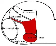 Sonic hedgehog (shh) signaling from the ZLI is crucial in the development of the diencephalon,[1] which develops into the thalamus, the pretectum, and the anterior tegmental structures.[2] The ZLI together with the prethalamus and thalamus make up the mid-diencephalic territory (MDT).[3]